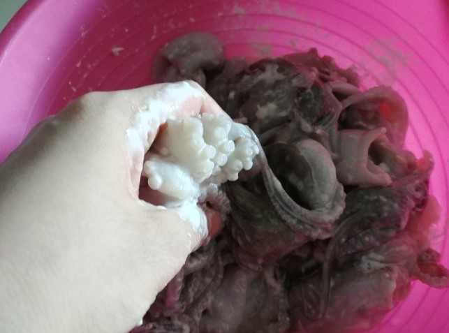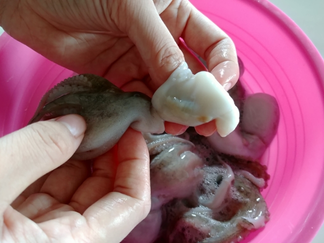 ✔ 내장과 먹물을 제거한 후 흐르는 물에 깨끗이 씻어주세요.